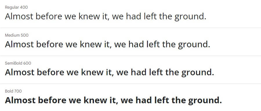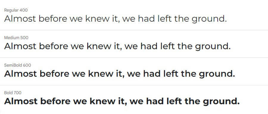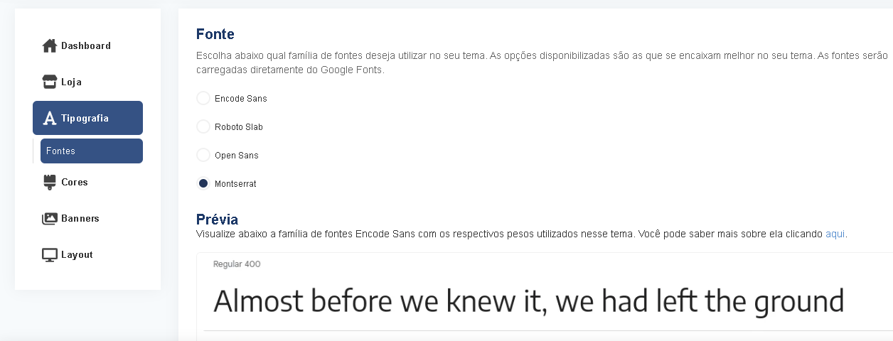 Ao selecionar cada uma das opções de família de fontes, uma prévia aparecerá com o a fonte selecionada e os pesos que o tema utilizará. Assim você conseguirá ter uma ideia da fonte que gosta mais.