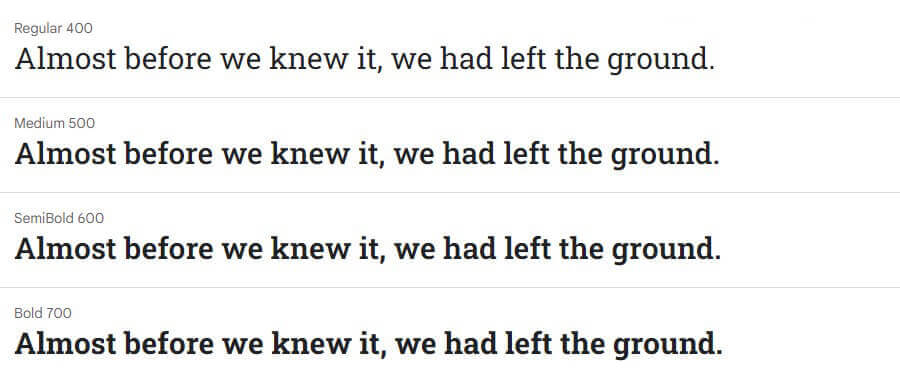 Roboto Slab: Uma fonte serifada, de aparência mais formal. Ideal para um site mais sóbrio e com elementos mais formais, como por exemplo uma loja de ternos;